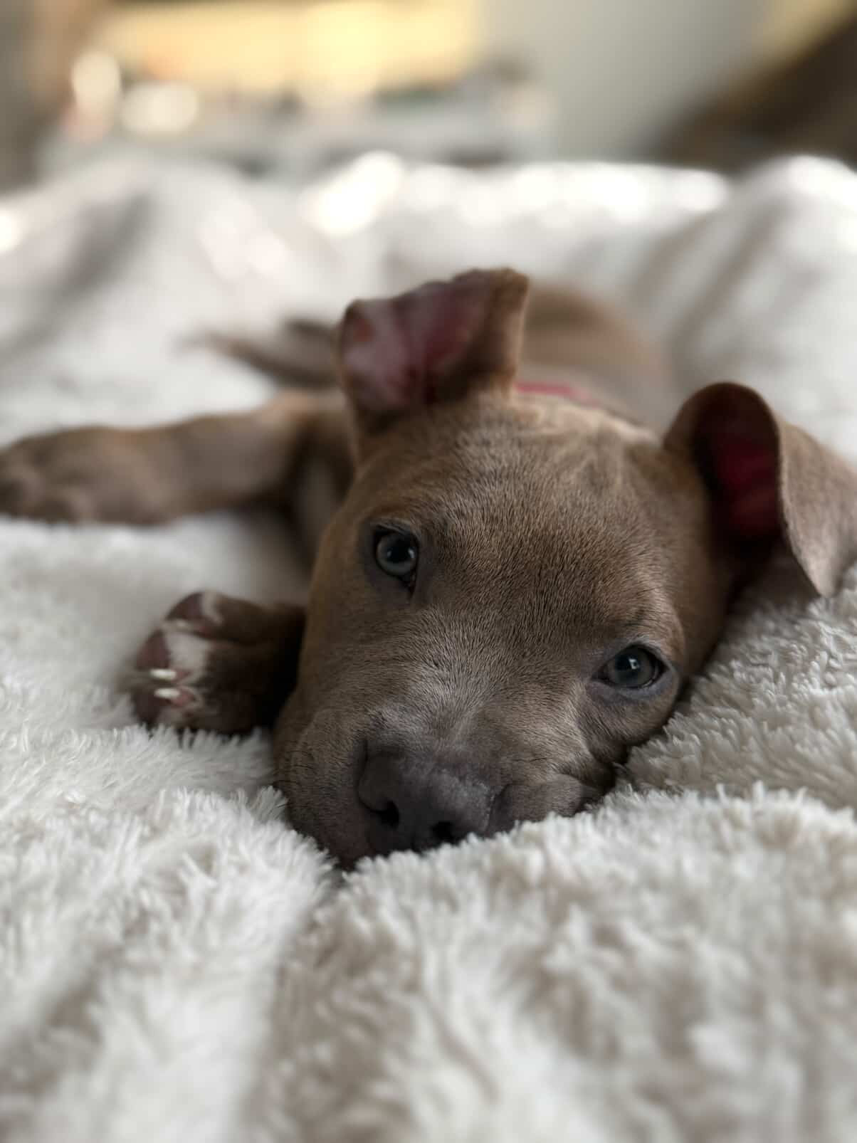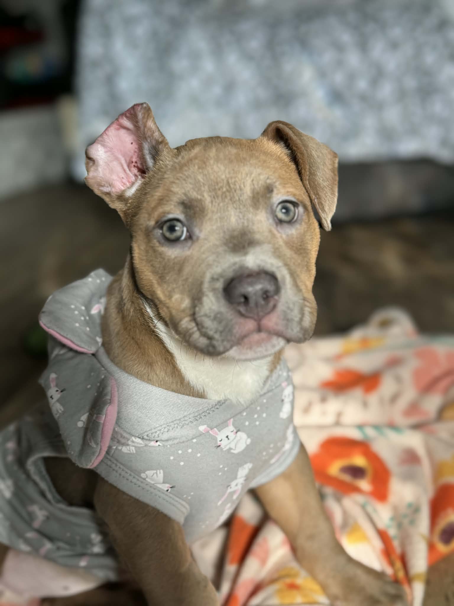 Luna came to us from the shelter after suffering a severe, human-inflicted injury. A rubber band had been tightly wrapped around her ear for so long that it became embedded in her skin. The tissue became infected and necrotic, and her ear was barely hanging on. 💔😭 To save her life, veterinarians had to surgically remove the damaged ear and all of the affected tissue.
